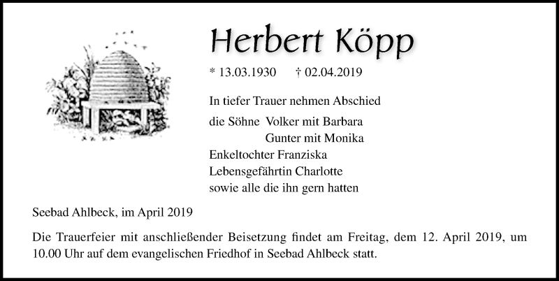Herbert Köppgestorben am 2. April 2019
