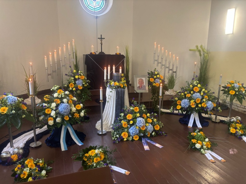 Trauerfeier in der Halle, Friedhof Benz